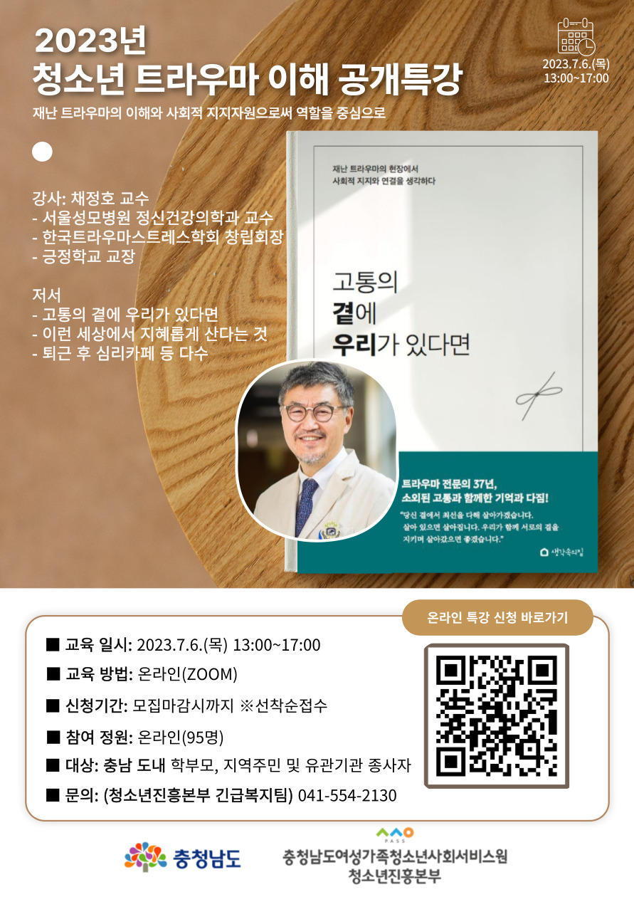 2023년 청소년 트라우마 이해 공개특강 안내 및 신청 안내