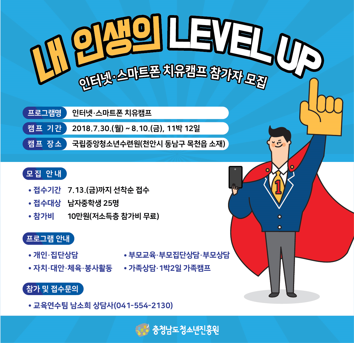 2018년 인터넷·스마트폰 치유캠프 『내 인생의 LEVEL UP』에 함께 할 청소년을 모집합니다!