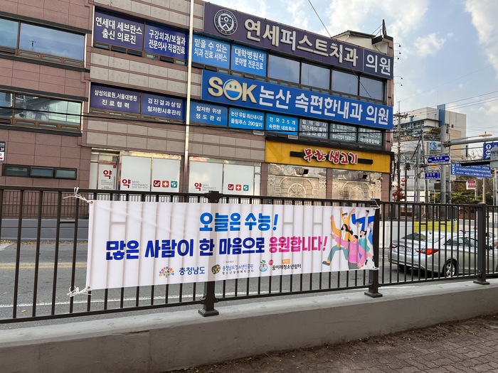 충청남도청소년상담복지센터(센터장 이순실)에 따르면 수학능력시험 전․후인11월 17일, 18일 양일간 천안시와 논산시 일대 청소년 밀집지역에서 청소년전화1388 이용경험 조사,충청남도청소년진흥원 카카오톡 채널 홍보 등 청소년 심리․정서지원서비스 안내 및 간식과 수능응원 물품을 배포하였다.