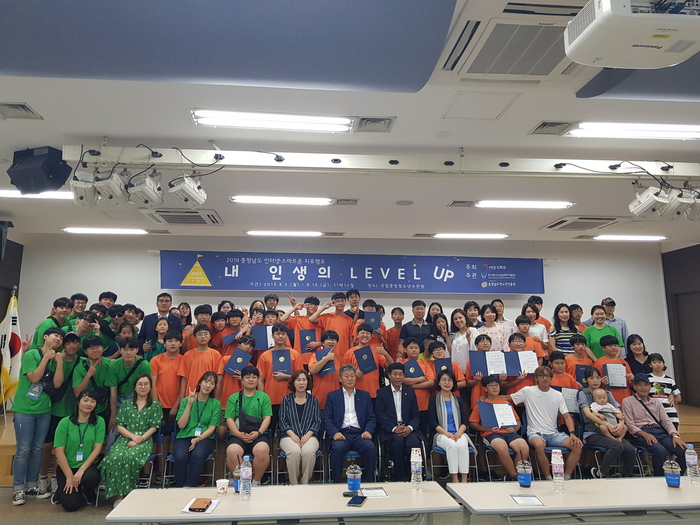 (재)충처남도처소년진흥원은 인터넷․스마트폰 올바른 사용습관 형성을 지원하기 위하여 8월5일부터 8월16일까지(11박12일)국립중앙청소년수련원에서 2019년 인터넷스마트폰 치유캠프 ‘내 인생의 Level up’을 실시했다.