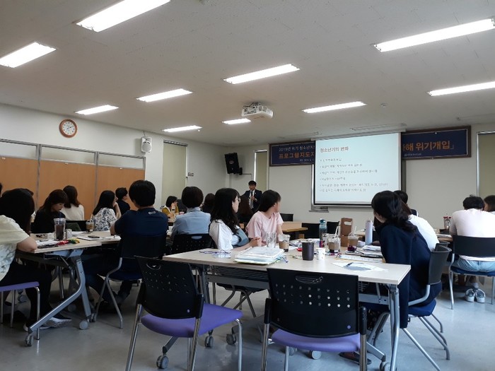 재)충청남도청소년진흥원(원장 박영의) 청소년상담복지센터는 6월 13일(목)부터 14일까지 이틀간 2019 충남 도, 시ᐧ군청소년상담복지센터 및 청소년지원센터 ⌜꿈드림」 종사자 37명 대상 청소년 자살ᐧ자해 위기개입을 주제로 2019년 프로그램지도자양성교육을 진행하였다.