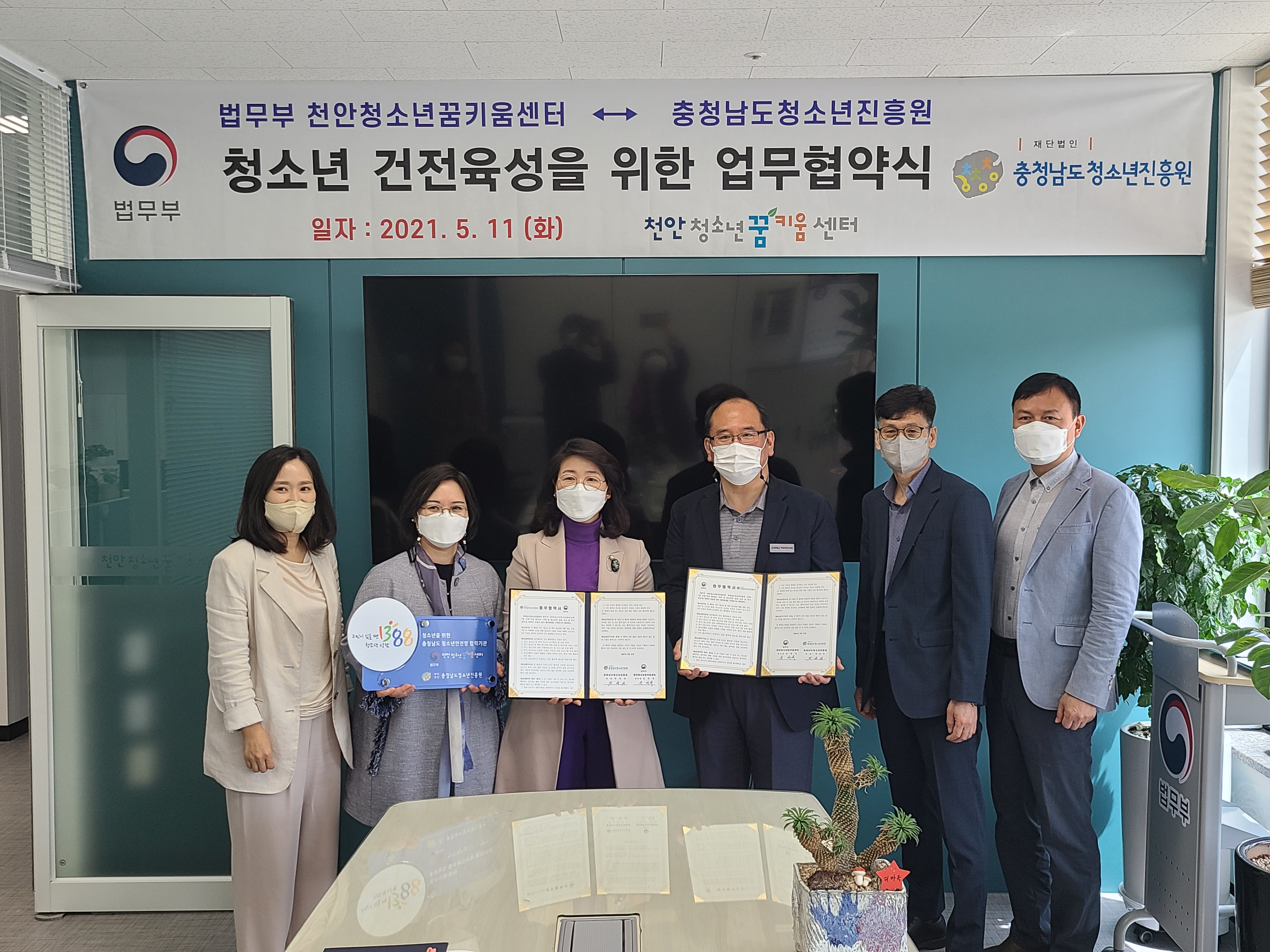 충청남도청소년진흥원(원장 박영의)과 법무부 천안청소년꿈키움센터(센터장 손세국)는 11일 지역 내 청소년 상담, 보호 및 복지 증진을 위해 업무협약을 체결했다.