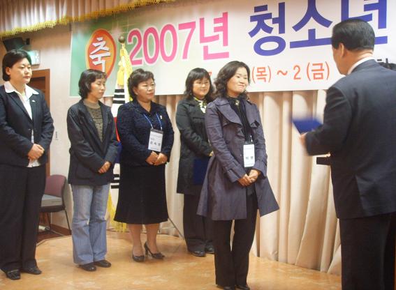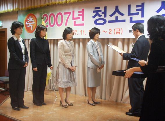 2007년 청소년상담프로그램 활성화대회 2765 | 최고관리자 | 2007-11-12 우수 상담프로그램 진행자들에 대한 표창장 수여가 있었습니다. 충청남도교육감 표창 및 충청남도청소년상담지원센터소장 표창 수상하신 모든 분들 축하드립니다.