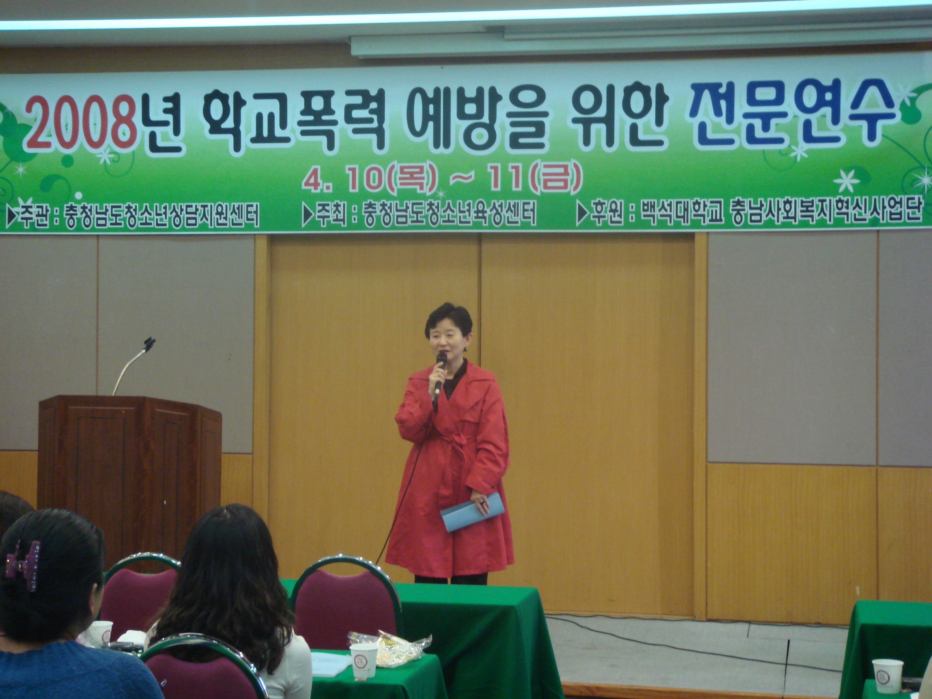2008년 학교폭력 예방을 위한 전문연수 2914 | 최고관리자 | 2008-04-23 2008년 4월 10일 11일 이틀동안 천안상록리조트에서 학교폭력 예방을 위한 전문연수가 진행되었습니다. 많은 분들의 참여로 성공적으로 마치수 있었습니다. 앞으로 진행되는 교육 및 연수에도 많은 참여 부탁드립니다.