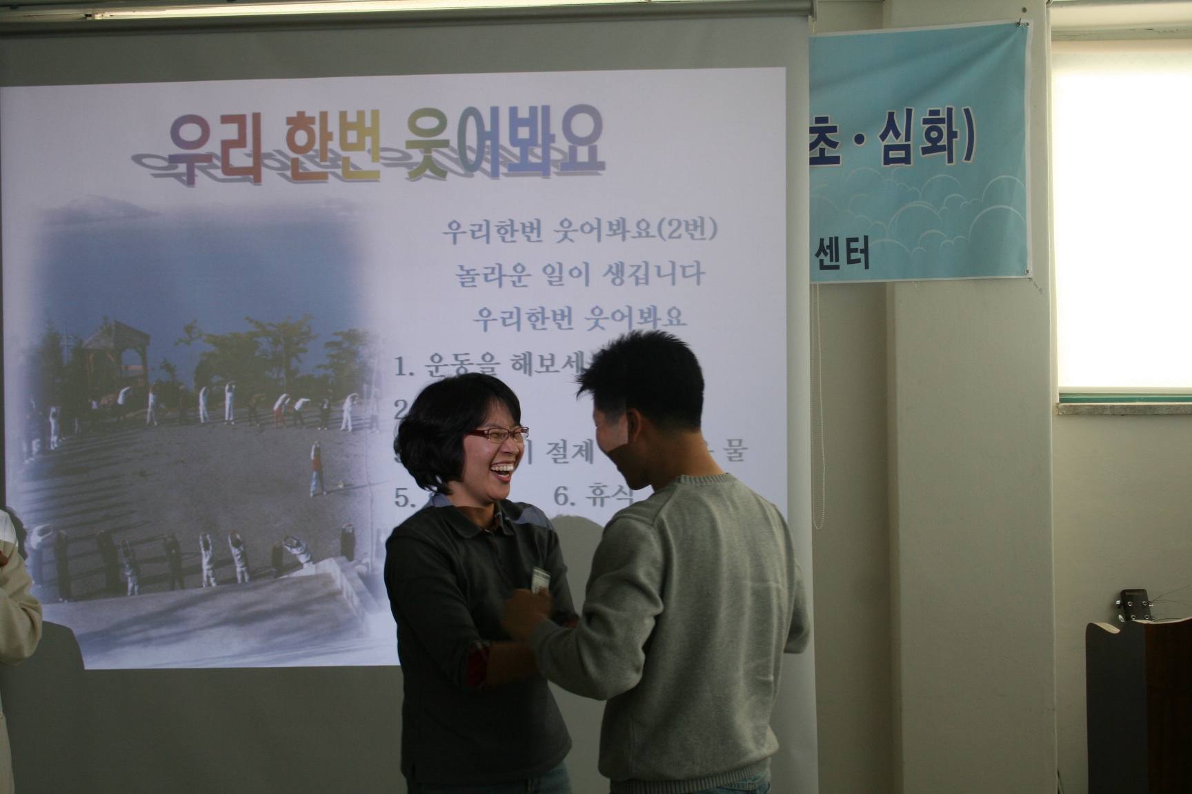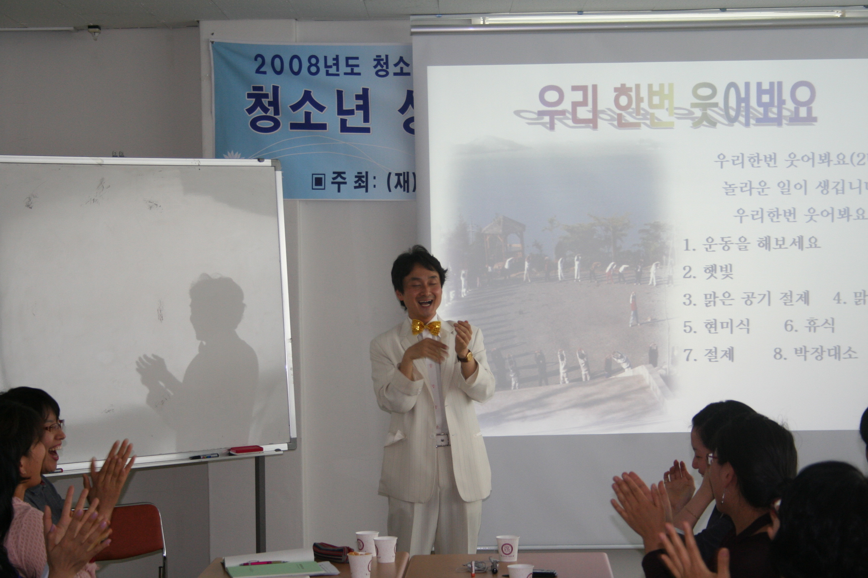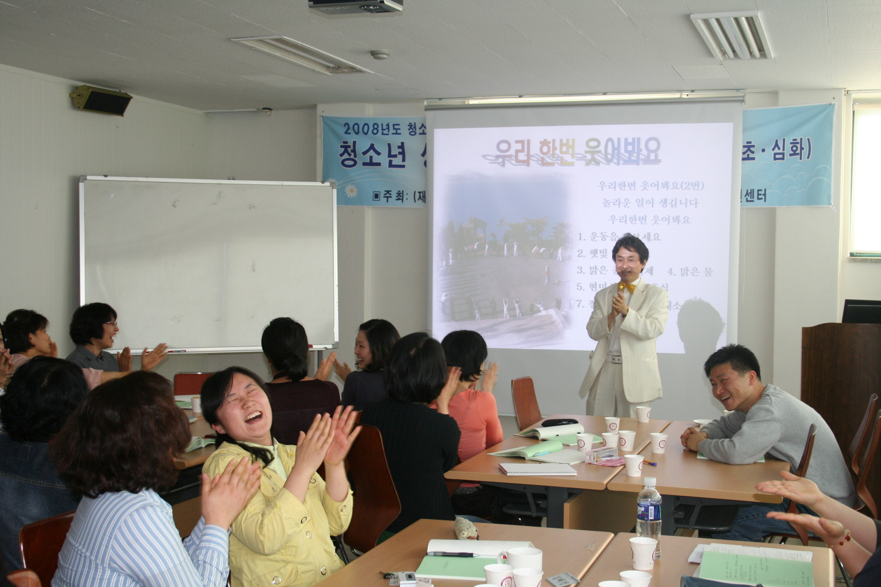 카운슬러대학 3078 | 최고관리자 | 2008-05-16 웃음치료 사진예요^^ 예비 카운슬러 선생님들의 밝게, 맑게 마음도 이쁘게 파안대소하는 모습~ 상담 공부 행복해요 2008년 5월 16일 상담지원실 손희란