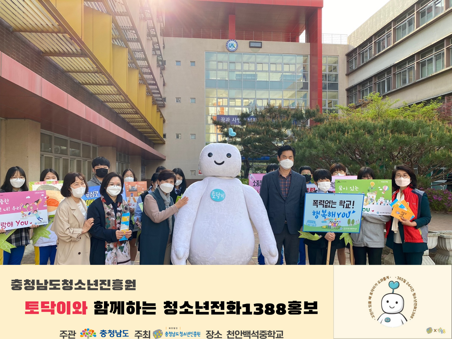 2021.4.21. 충남청소년진흥원_토닥이 채널 출범식 1662 | 최고관리자 | 2021-04-21 2021.4.21.(수) 천안백석중학교에 방문하여 학교폭력예방 또래상담자들과 충남청소년진흥원_토닥이 카카오톡 채널 출범식을 함께 하였습니다.