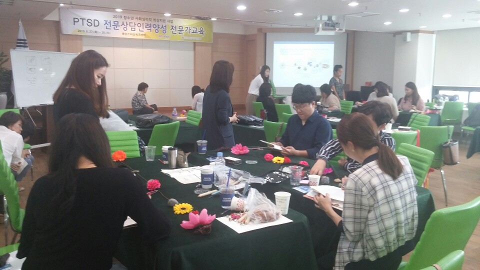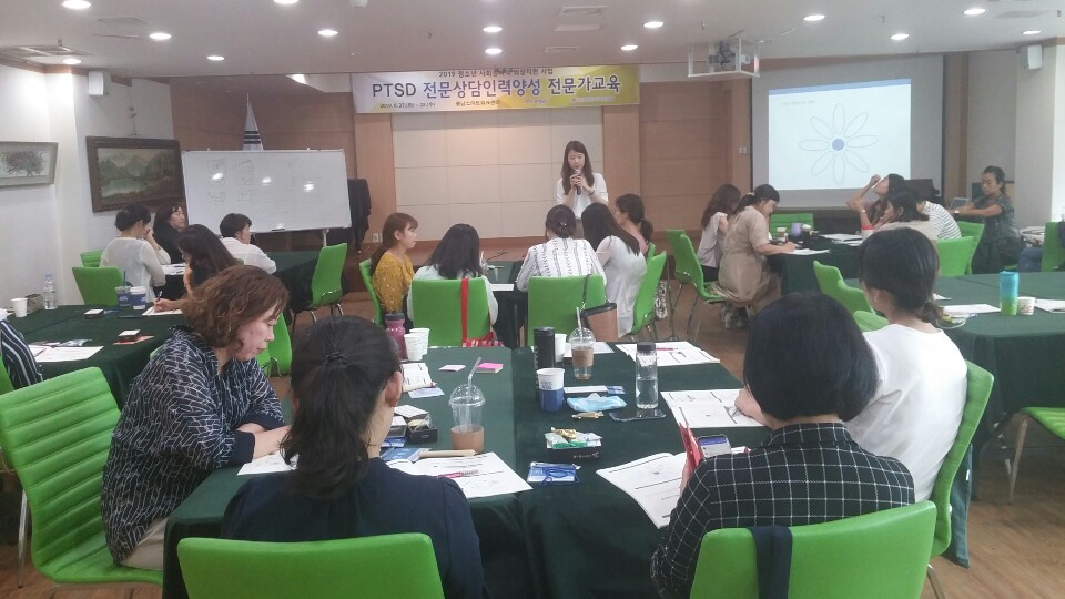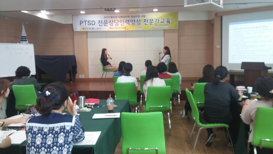 2019년 PTSD전문상담인력양성 전문가교육 1347 | 최고관리자 | 2019-11-11 - 일시 : 2019년 8월 27일(화) ~ 8월 28일(수) - 장소 : 충남스마트워크센터 - 교육내용: 근거기반 트라우마 노출 치료 * 청소년 심리적 외상에 대한 효과적 개입을 위한 PTSD전문상담인력양성 단계별 연수 중 전문가교육이 진행되었습니다. <?xml:namespace prefix = "o" ns = "urn:schemas-microsoft-com:office:office" />
