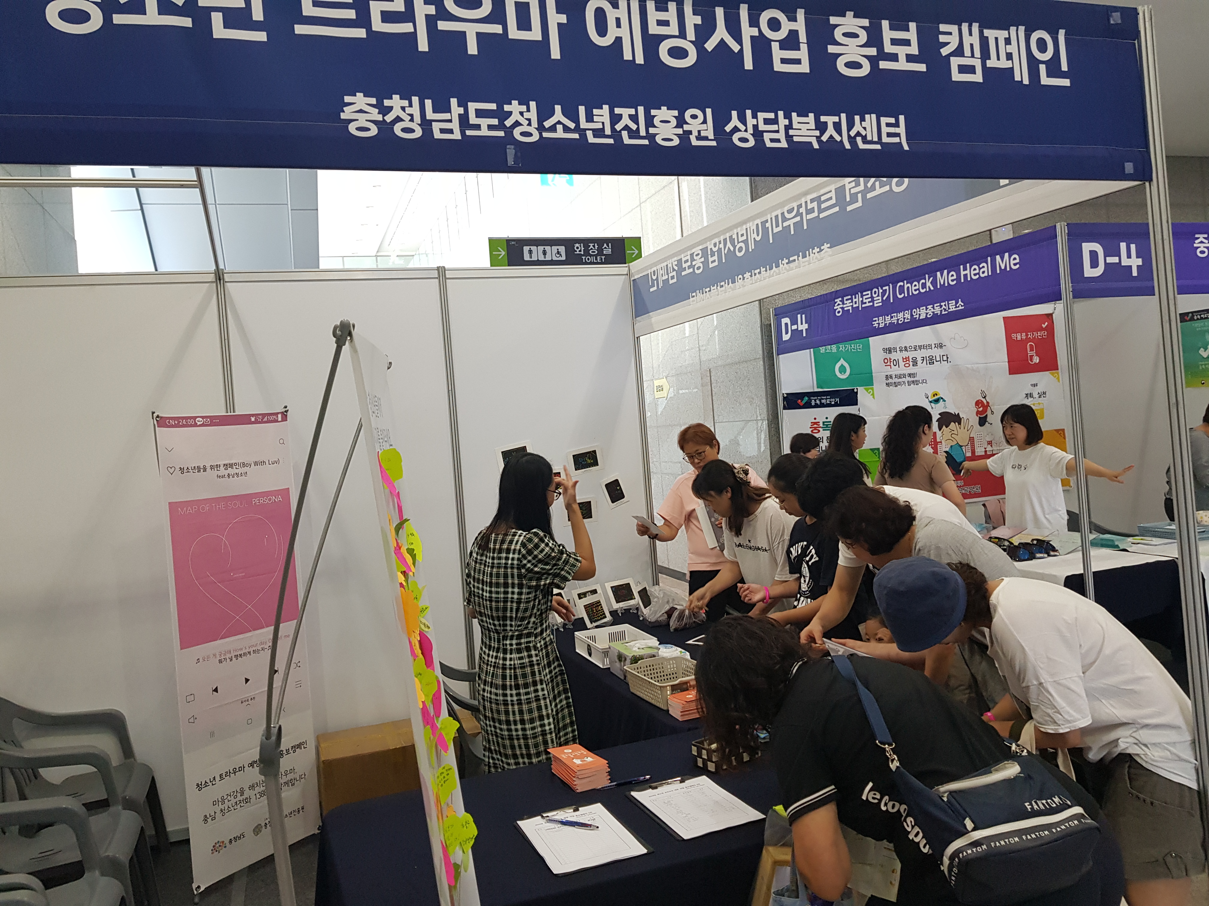 2019년 청소년 트라우마 예방 사업 홍보캠페인 5차 1288 | 최고관리자 | 2019-11-11 - 일시 : 2019. 08. 31.(토) - 장소 : 공주고마센터 - 내용: 나(청소년)에게 보내는 응원메시지 체험 프로그램 진행, 청소년상담복지센터 및 사회 심리적 외상 사업 홍보