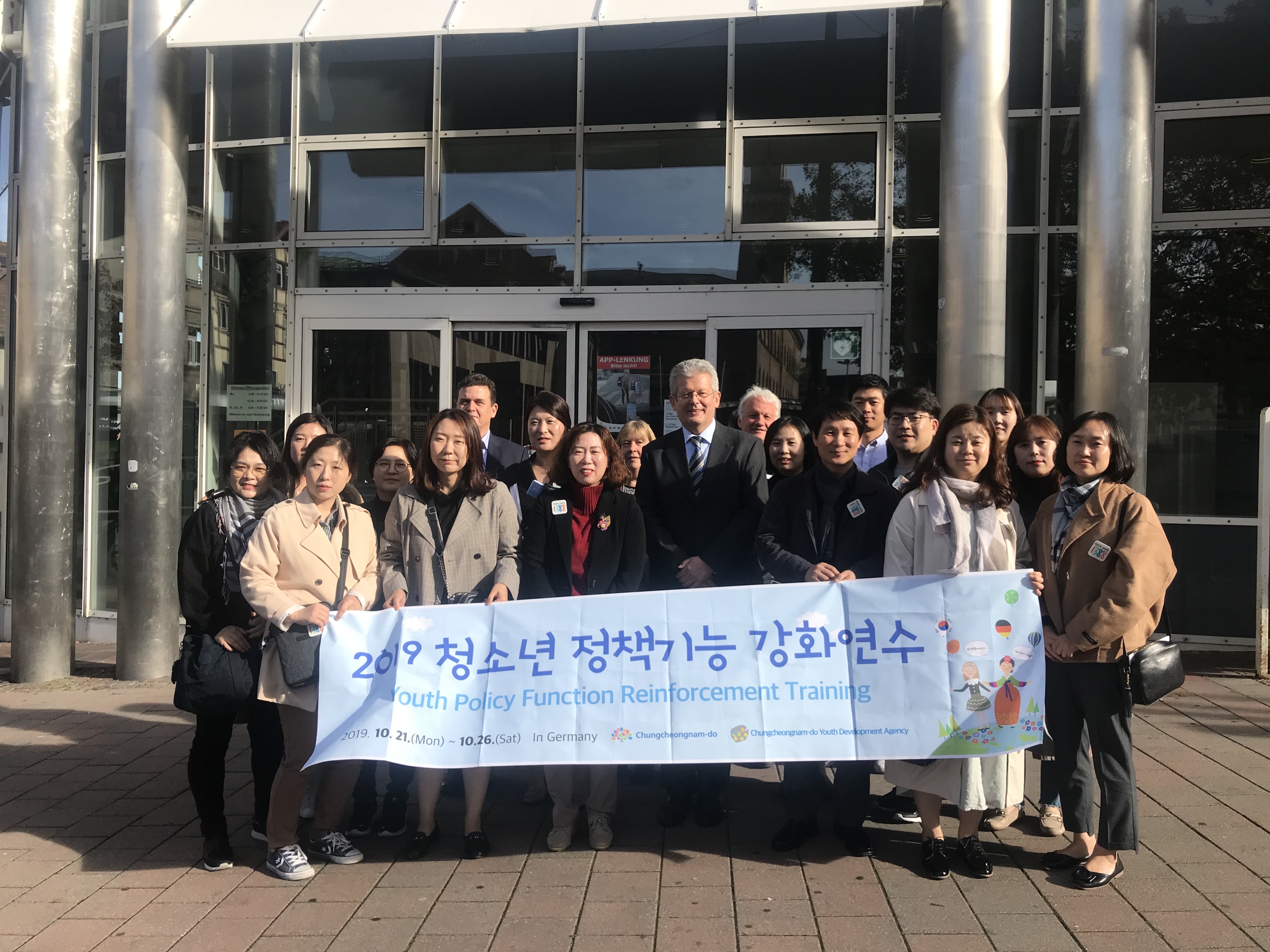 2019 청소년 정책기능 강화연수 1458 | 최고관리자 | 2019-11-11 - 일정: 2019. 10.21.(월) ~ 10.26.(토) - 연수국: 독일- 내용: 청소년 관련 기관방문 및 선진 정책 발굴