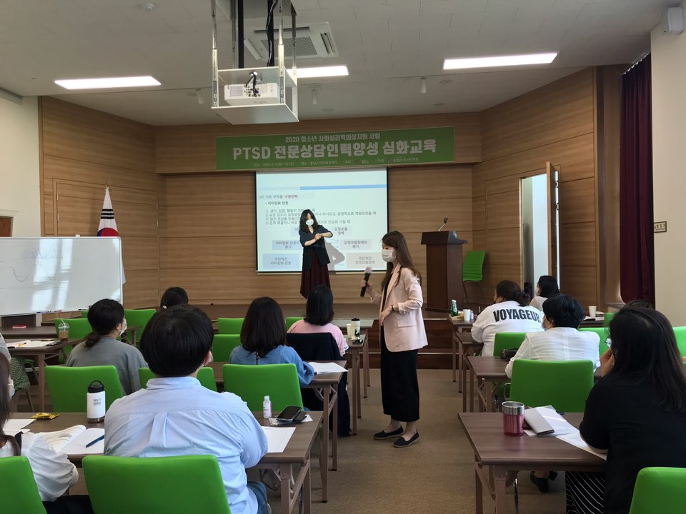 2020년 PTSD 전문상담인력양성 심화교육 1265 | 최고관리자 | 2020-07-14 2020년 PTSD전문상담인력양성 심화교육 -일시: 2020년 6월 9일(화)~10일(수), 10:00~17:00 -장소: 충남스마트워크센터 -대상: 청소년상담복지센터 및 유관기관 종사자, 학교상담사 등 PTSD 전문상담인력양성 기초교육 수료자 -내용: 안정화 단계 근거기반 트라우마 심리치료