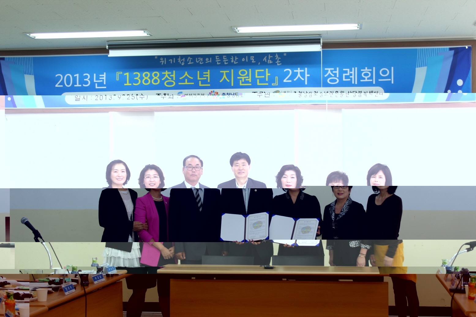 1388청소년지원단 2차 정례회의 3256 | 최고관리자 | 2014-01-11 2013년 9월 25일 (수) 1388청소년지원단 2차 정례회의 신규협약 : 천안시교모회 참석 : 1388청소년지원단장 외 24명 내용 : 1234운동 진행상황 보고 및 추후 추진 계획, 1234운동 위기청소년 지원 사례 논의 등