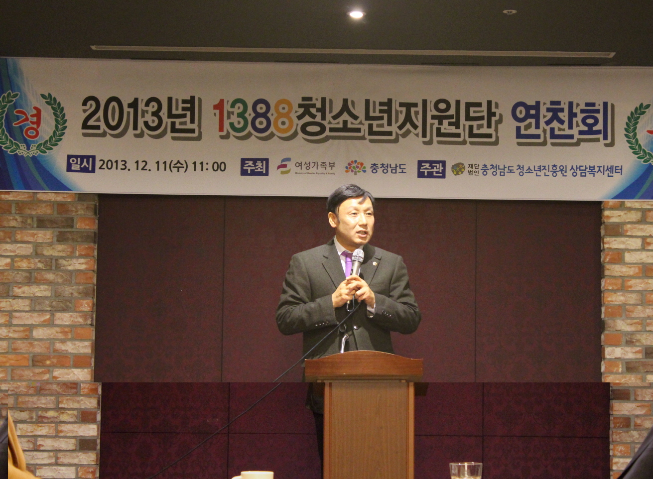 1388청소년지원단 연찬회 및 사업보고대회 3533 | 최고관리자 | 2014-01-11 ○ 일시 : 12. 11 (수요일) 11:00~14:00 ○ 장소 : 발할라(천안시 서북구 불당동) ○ 대상 : 1388청소년지원단 및 유관기관 관계관, 청소년 등 ○ 주요내용 : 감사패 및 표창 수여, 사업보고, 청소년 사례발표, 장학금 전달, 축하공연 등