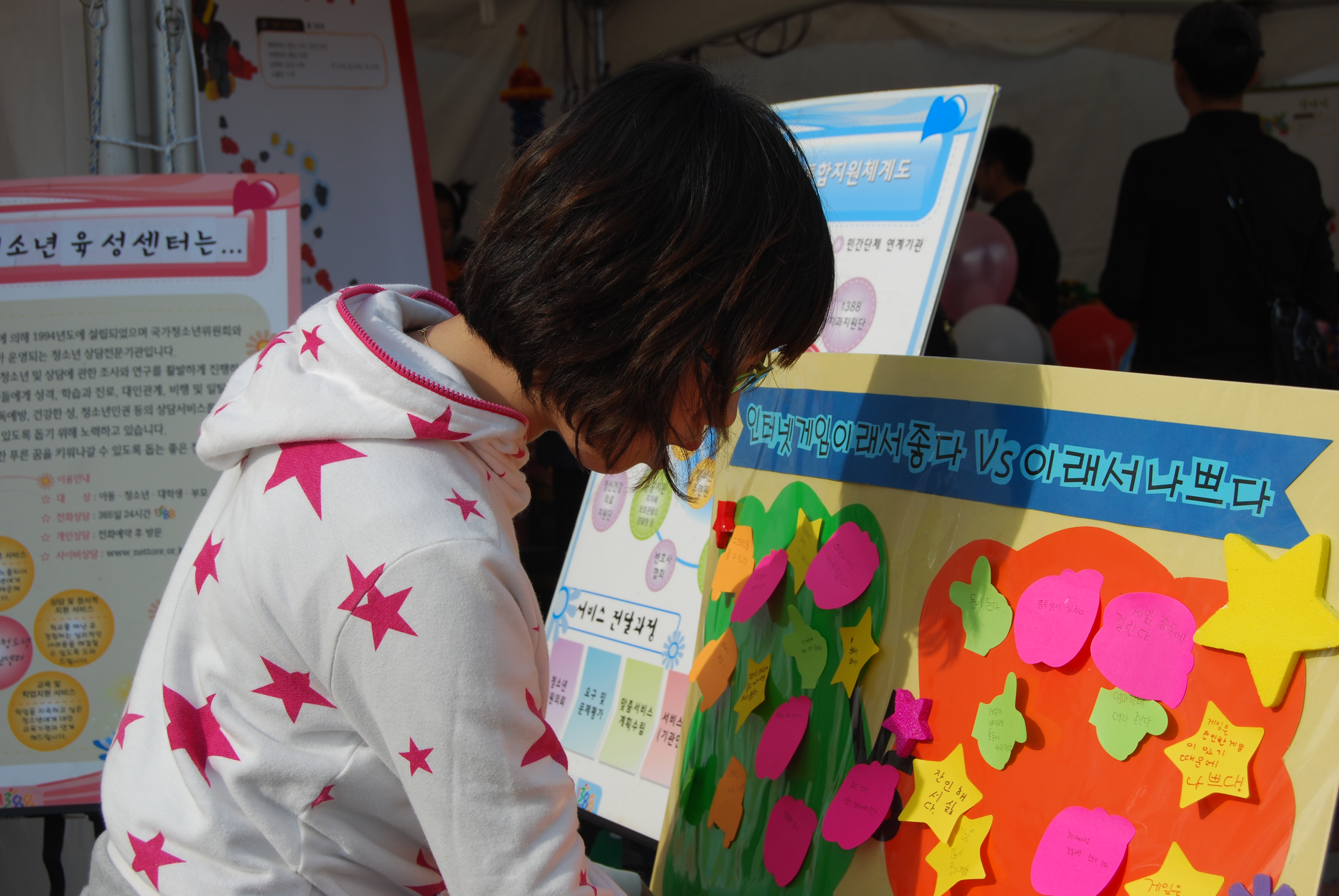 2011년 천안삼거리 아웃리치 활동 3116 | 최고관리자 | 2011-10-04 장소: 천안삼거리일시: 2011.09. 29 - 10.01활동내용: 흥타령축제 부스 주변 홍보활동, 심리검사 및 상담