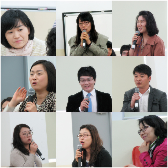 2011 솔리언또래상담프로그램 지도자 양성교육 2834 | 최고관리자 | 2011-04-05 함께했던 선생님들의 모습을 올려봅니다.물론 모든 분들의 사진은 아니고요.아이들 마냥 소감나누는데 쑥쓰러워 하기도 하셨었죠. ^^열심히 참여해주셔서 감사드려요.