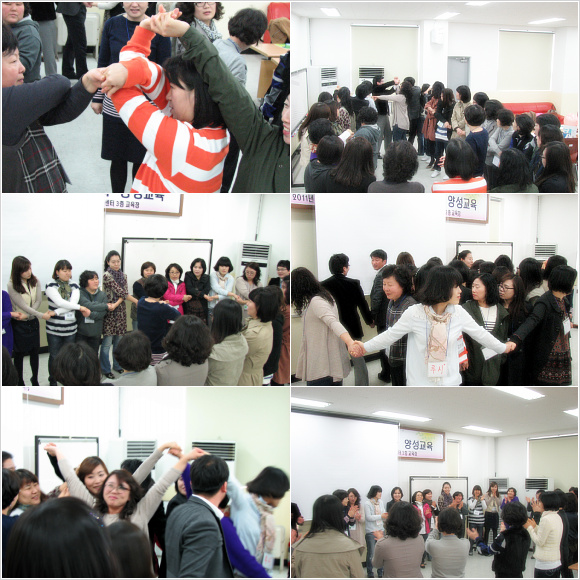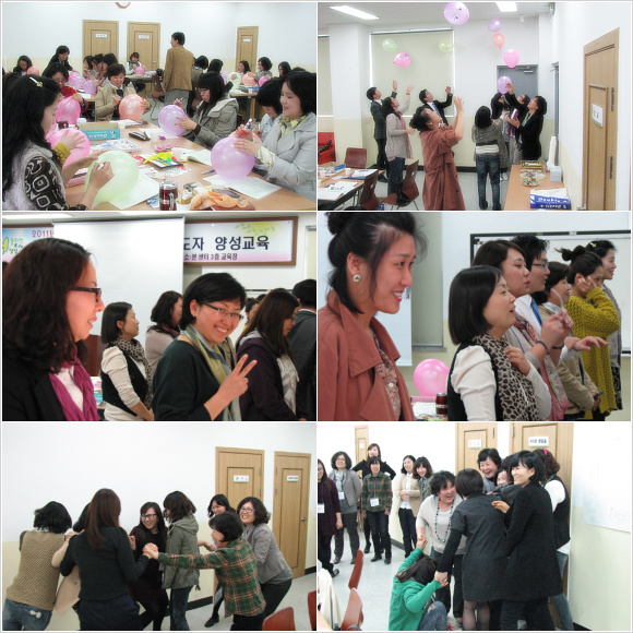 2011 솔리언또래상담프로그램 지도자 양성교육 2909 | 최고관리자 | 2011-04-05 교육 2일 동안 많은 것을 배웠는데요.그중 재미있고 즐겁게 노는 방법도 배웠습니다.즐거우면 마음이 열리니까요.몸을 아끼지 않았던 선생님들의 모습이 자랑스럽습니다. ^^