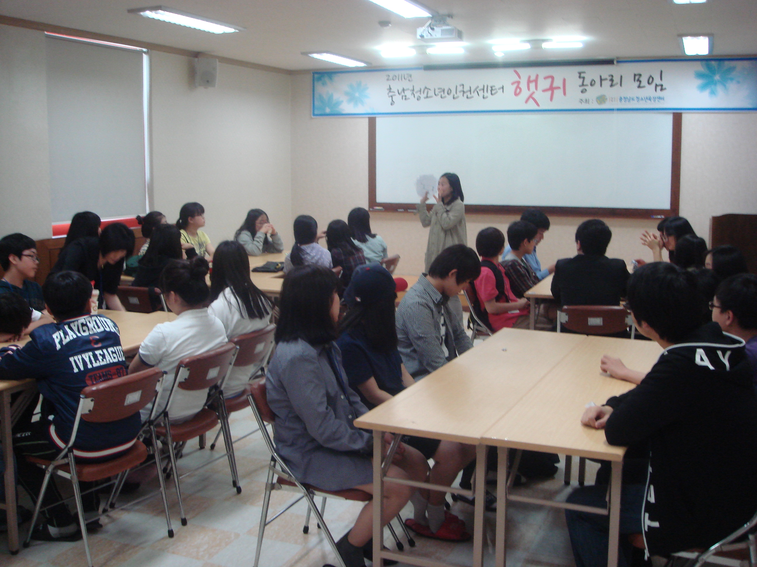 2011.5.14 인권동아리 '햇귀' 3051 | 최고관리자 | 2011-05-23 2011년 5월 14일 충남청소년인권센터 '햇귀' 동아리 모임- 인권교육 및 인권지킴이 위촉식을 가졌어요 ~