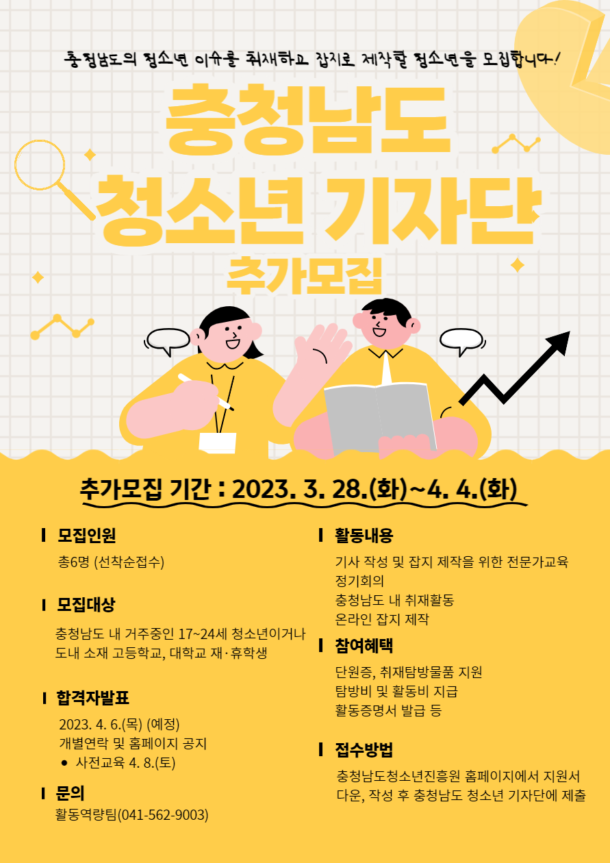 [모집] 충청남도 청소년 기자단 추가 모집 안내