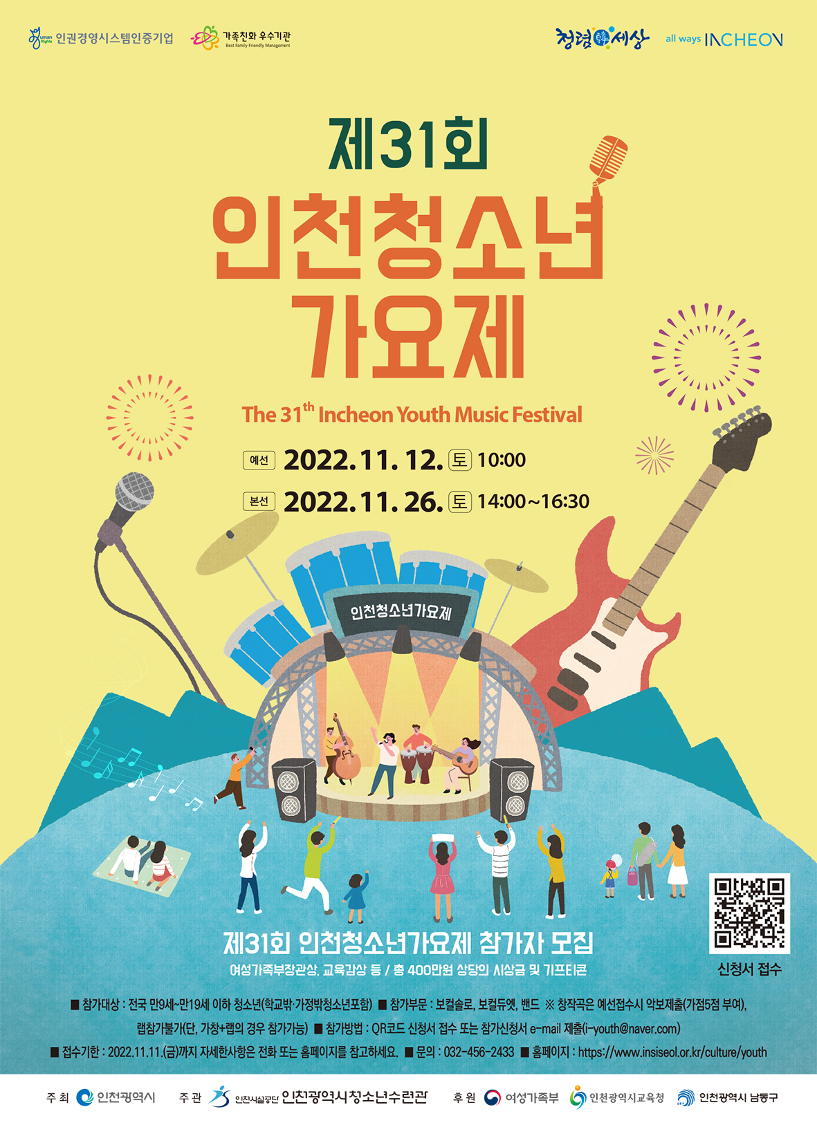 아. 문의: 032-456-2433 / 카카오톡 오픈채팅 → 인천 청소년가요제