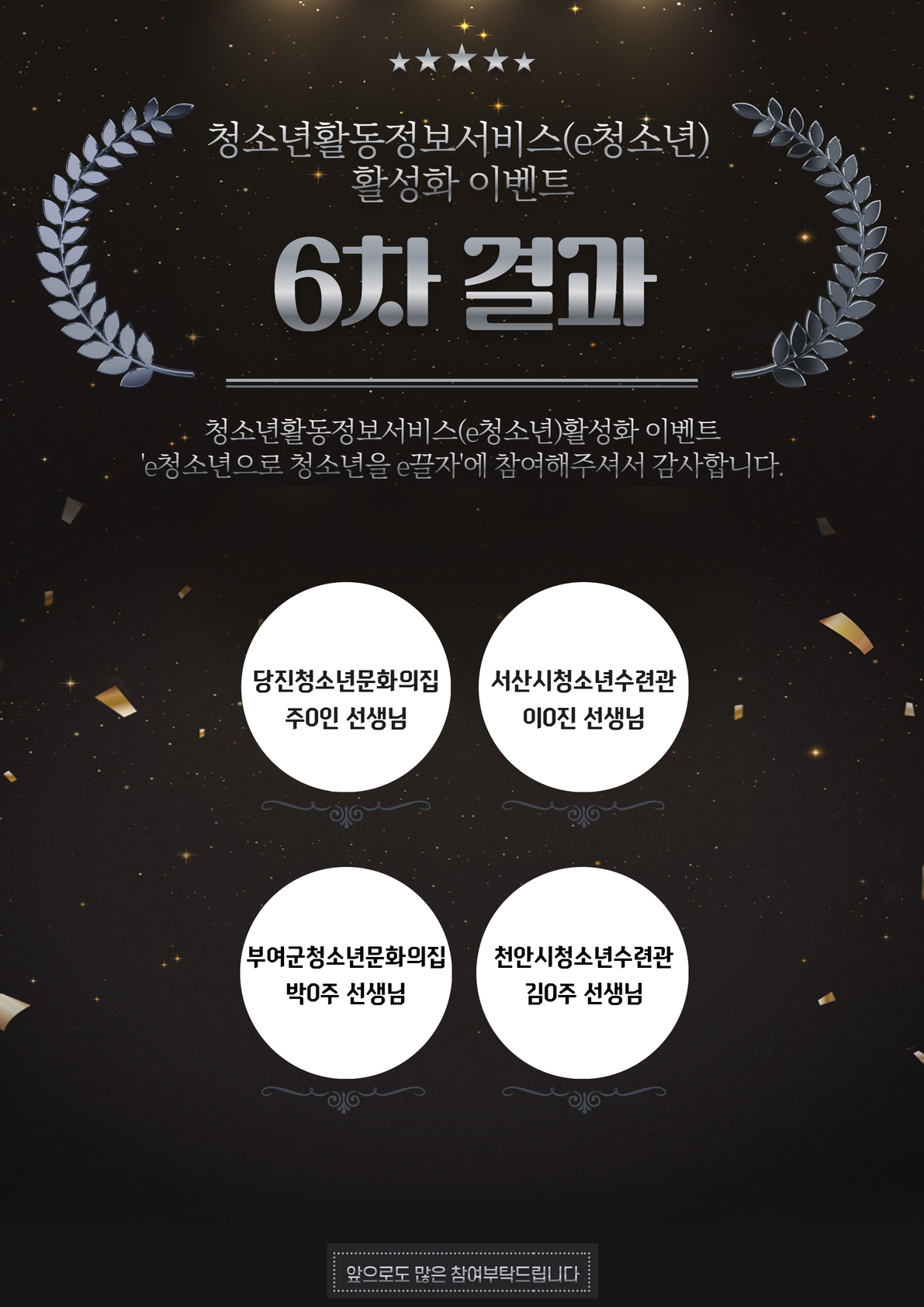 청소년활동정보서비스(e청소년) 활성화 이벤트 6차 선정자 발표