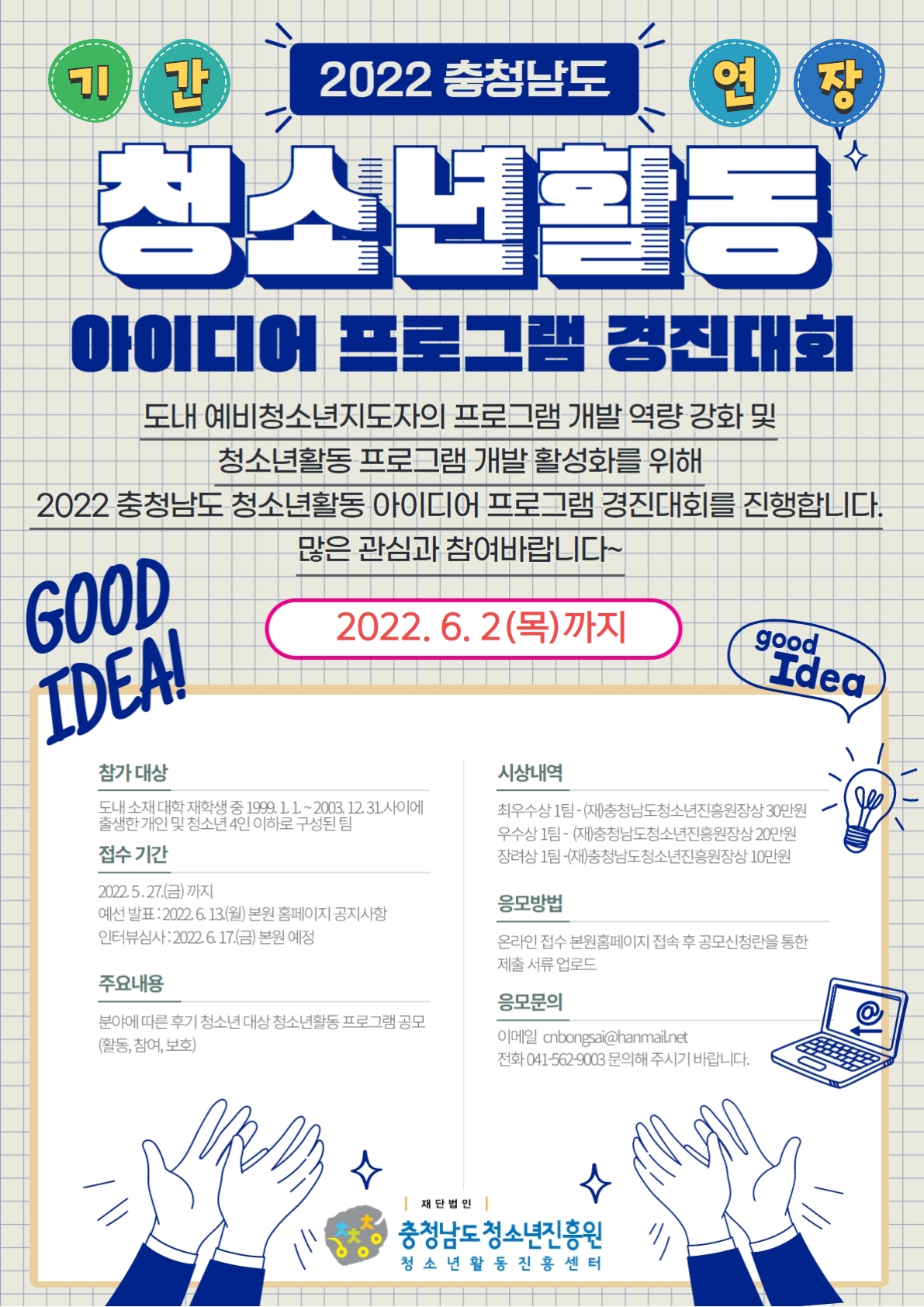 - 공 고 명: 충청남도 청소년활동 아이디어 프로그램 공모