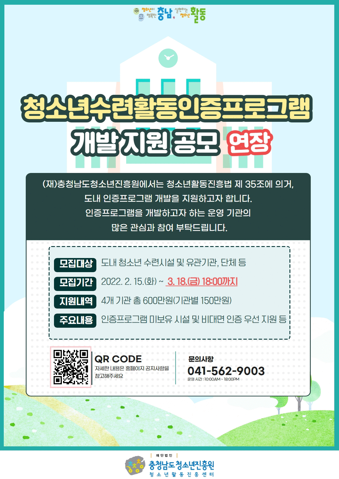 □ 문 의 : ☎ 청소년활동진흥센터 활동혁신팀 041-562-9003