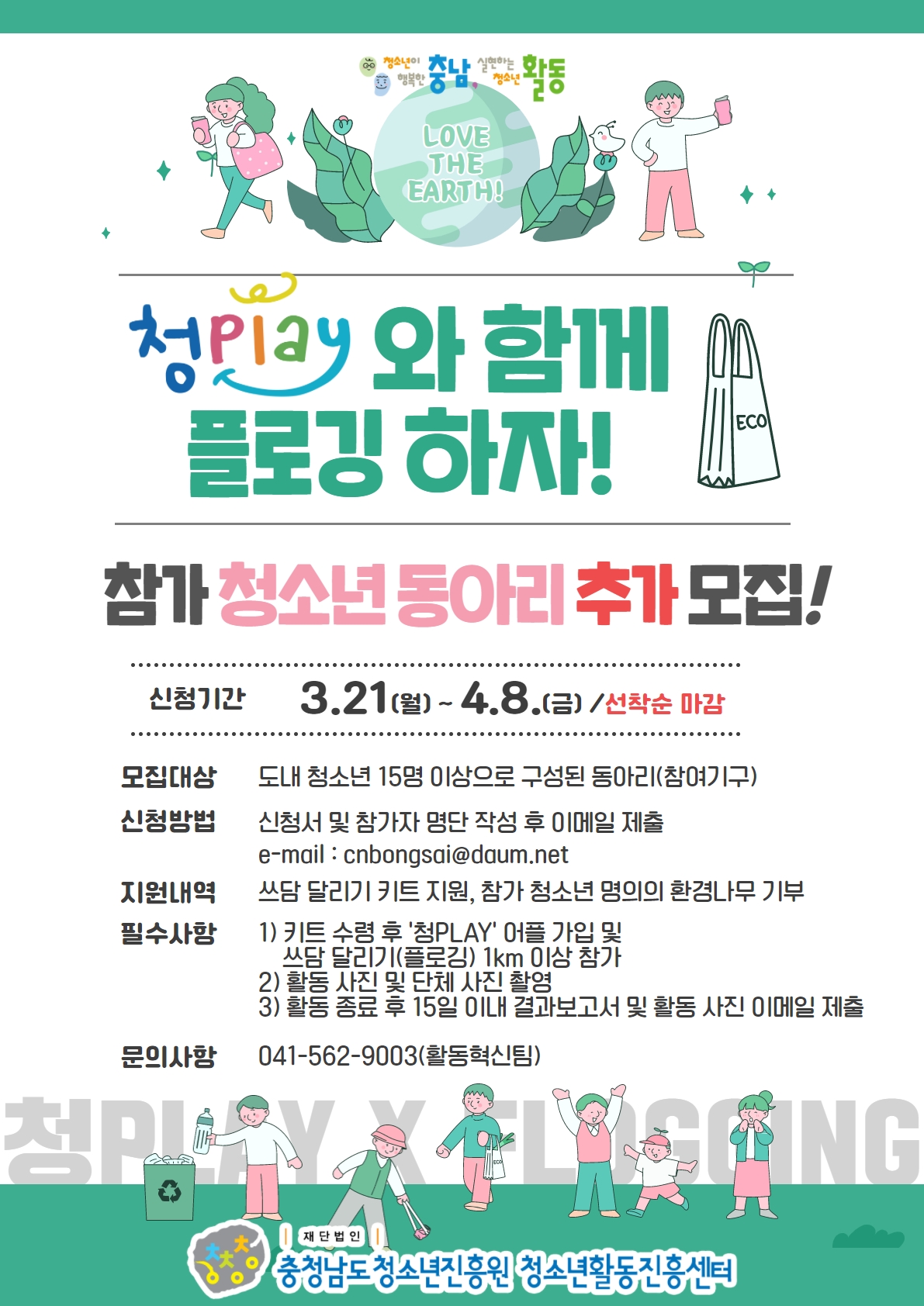 [모집] 청PLAY 플로깅 참가 청소년 동아리 (참여기구) 추가 모집