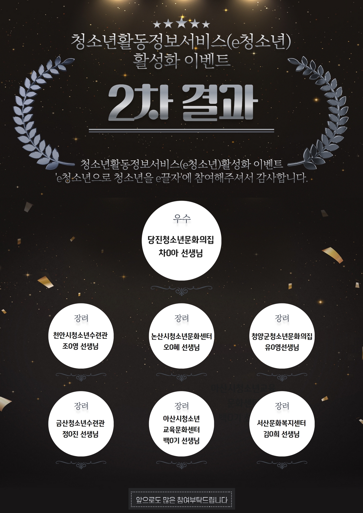 [안내] 청소년활동정보서비스(e청소년) 2차 이벤트 결과 안내