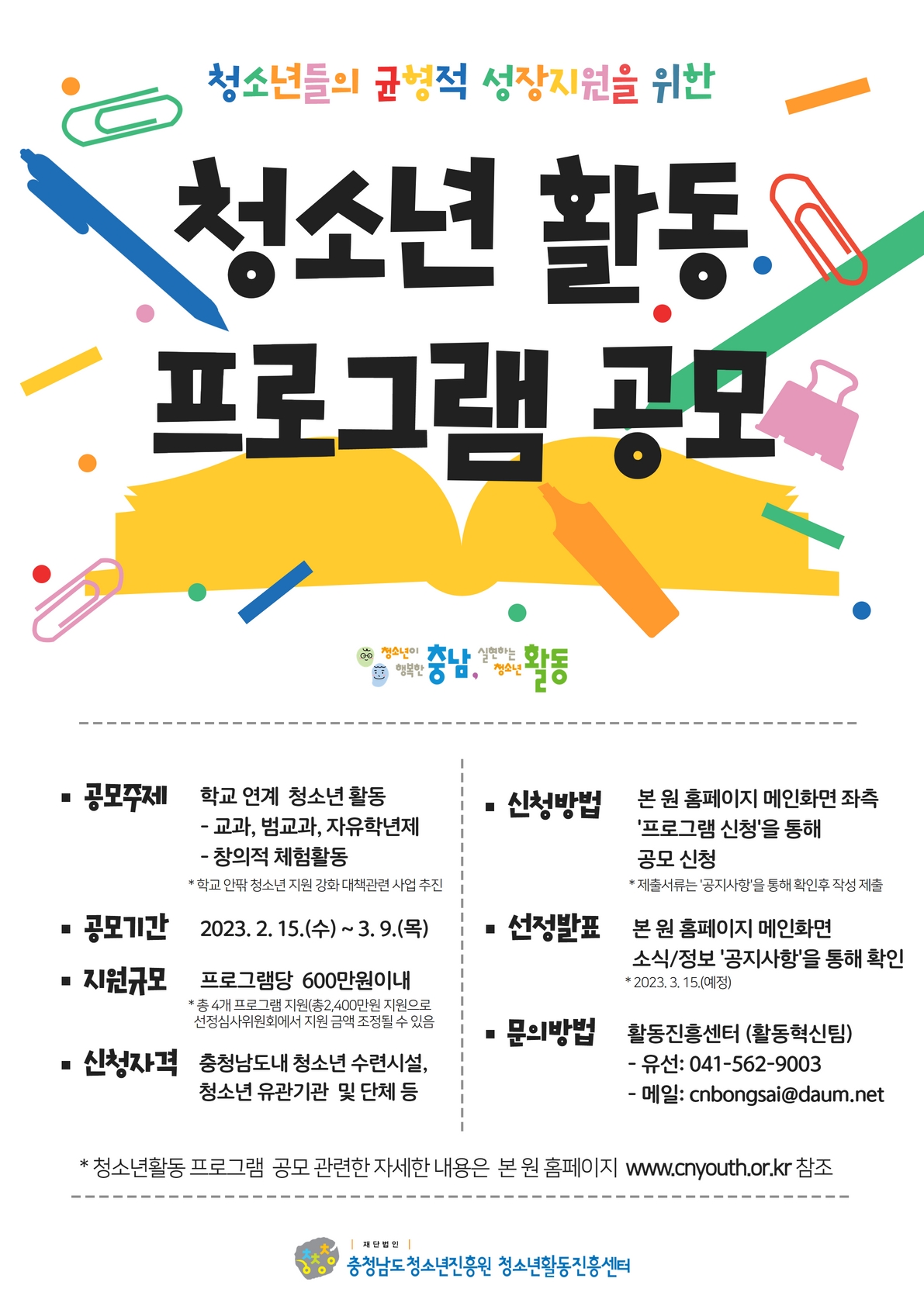 재단법인 충청남도청소년진흥원 활동진흥센터에서는 지역 균형적 성장을 지원하고자