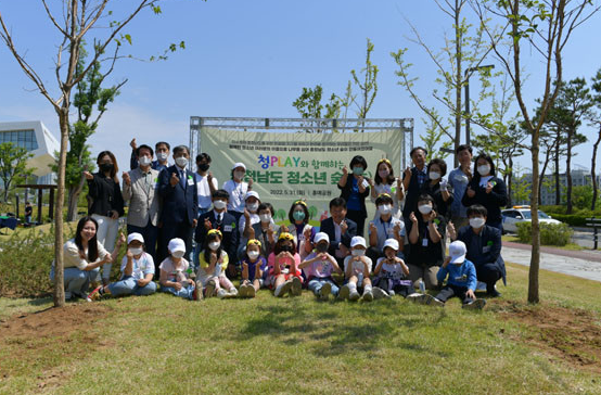 재단법인 충청남도청소년진흥원(원장 박영의)은 청소년의 달 5월을 맞이해 홍예공원(홍성)에서 청PLAY와 함께하는 ‘충청남도 청소년 숲’ 1호 조성 현판 제막식을 진행했다.