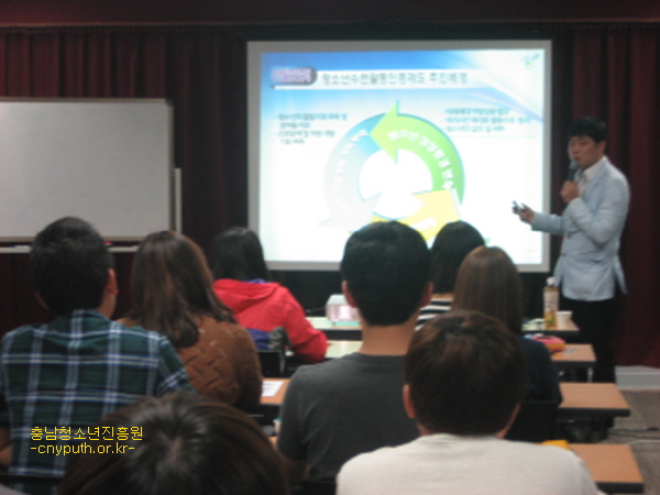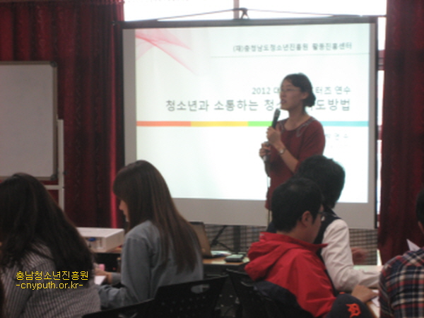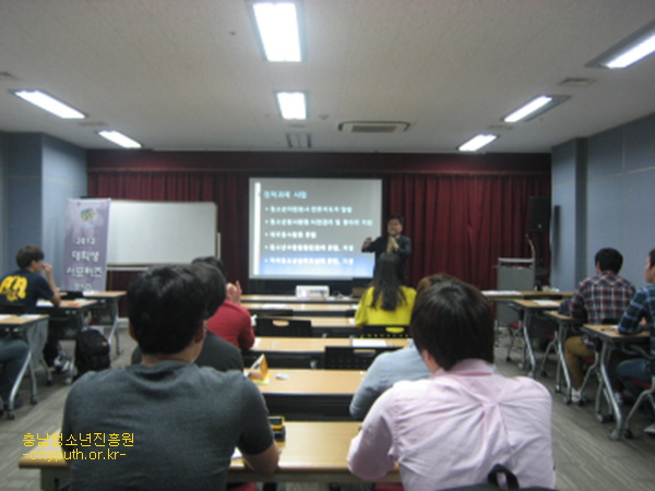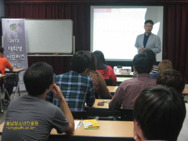 2012대학생서포터즈연수 진행 4629 | 최고관리자 | 2012-10-24 지난 10월 5일(금)~6일(토)/ 1박2일동안천안축구센터에서도내 대학생 34명과 함께 대학생서포터즈연수를 진행하였습니다.지역사회와 연계하는 청소년프로그램, 현장에서 활용할 수 있는 청소년지도방법기타 진흥원소개 및 청소년정책사업에 대한 설명으로 진행되었습니다