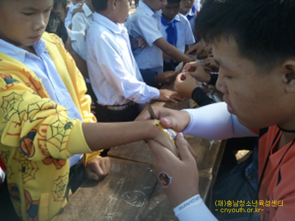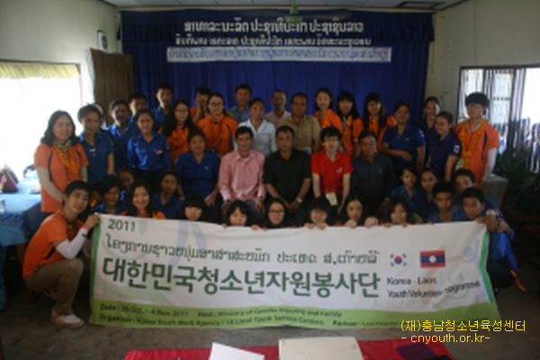 2011 대한민국청소년자원봉사단 파견활동(라오스 폰홍) 4753 | 최고관리자 | 2011-11-15 지난 2011년 10월 26일(수) ~ 11월 4일, 9박 10일동안라오스 폰홍지역에서 충남을 대표하여 15명의 청소년이 해외자원봉사활동을 참여하였습니다.학교 시멘트울타리만들기 및 페인트칠하기, 환경캠페인, 한국어교실, 영어음악교실 기타 다양한 문화교류활동을 통하여 라오스를 알게된 좋은 시간이 되었습니다.