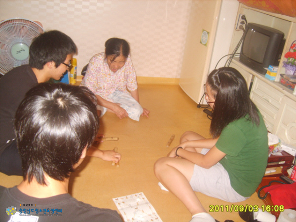 청소년활동우수프로그램지원사업 '나래' 4109 | 최고관리자 | 2011-09-14 9월 3일에 있었던 청소년활동 우수프로그램 지원사업 '나래'의 활동 사진입니다. 이번활동은 여가지원활동으로 사전에 우리나라의 전통놀이를 배우고 독거노인과 함께 윷놀이하고, 명절선물을 전달하는 프로그램으로 진행되었습니다. 활동을 통해 청소년들이 자신이 도움을 주고 즐겁게 해드릴수 있다는것에대해 자부심을 느끼고, 어르신들의 정을 많이 느끼고 있습니다.