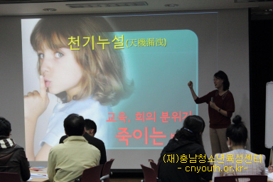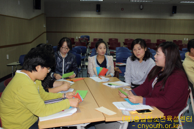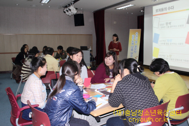 유관기관 실무자 역량강화 연수 3955 | 최고관리자 | 2011-10-21 * 일 시 : 2011년 10월 7일(금)* 장 소 : 천안시두정도서관 다목적홀* 대 상 : 도내 청소년유관기관 실무자* 인 원 : 17명* 내 용 : 청소년과 효율적으로 소통하는 회의방법