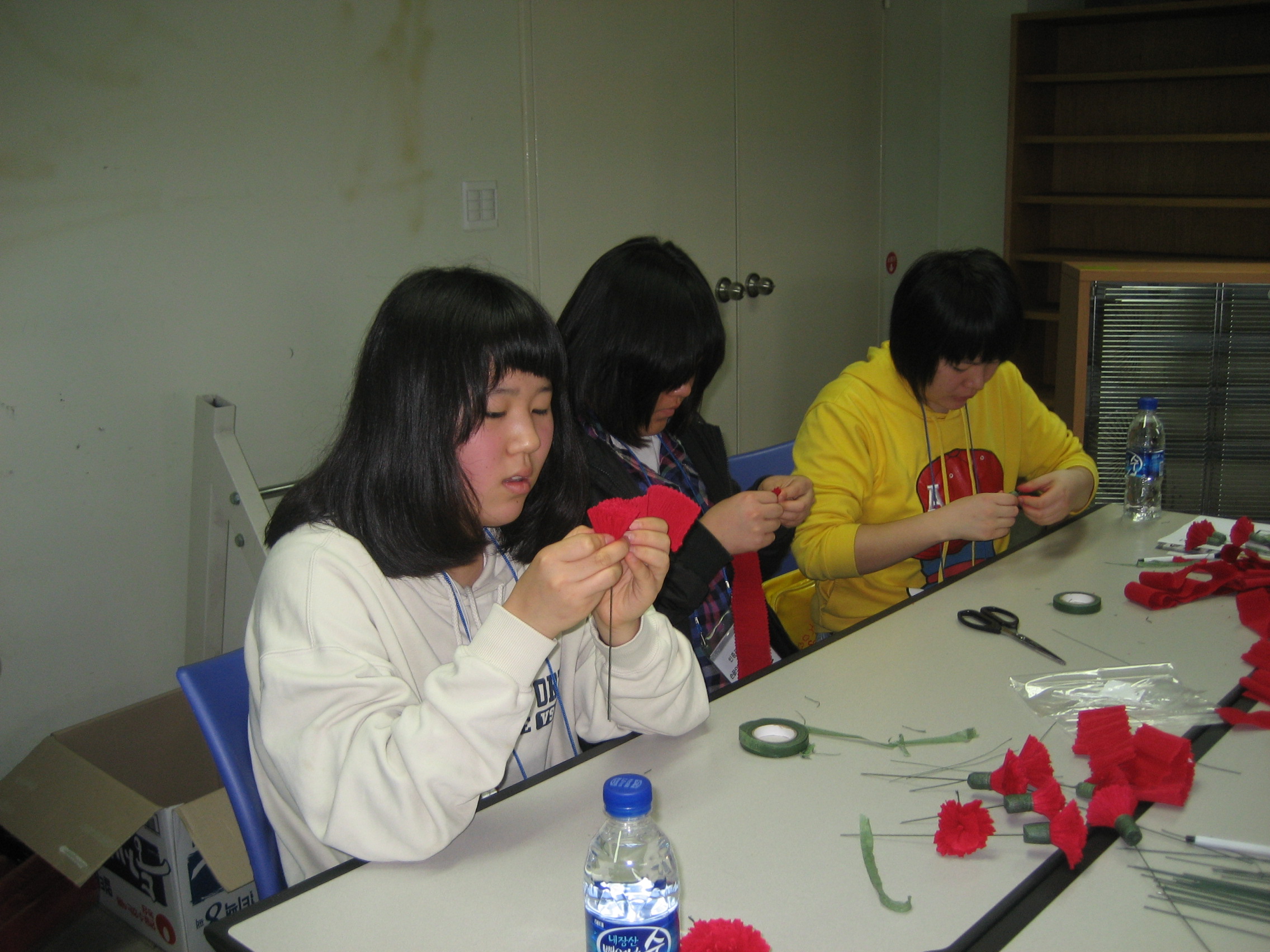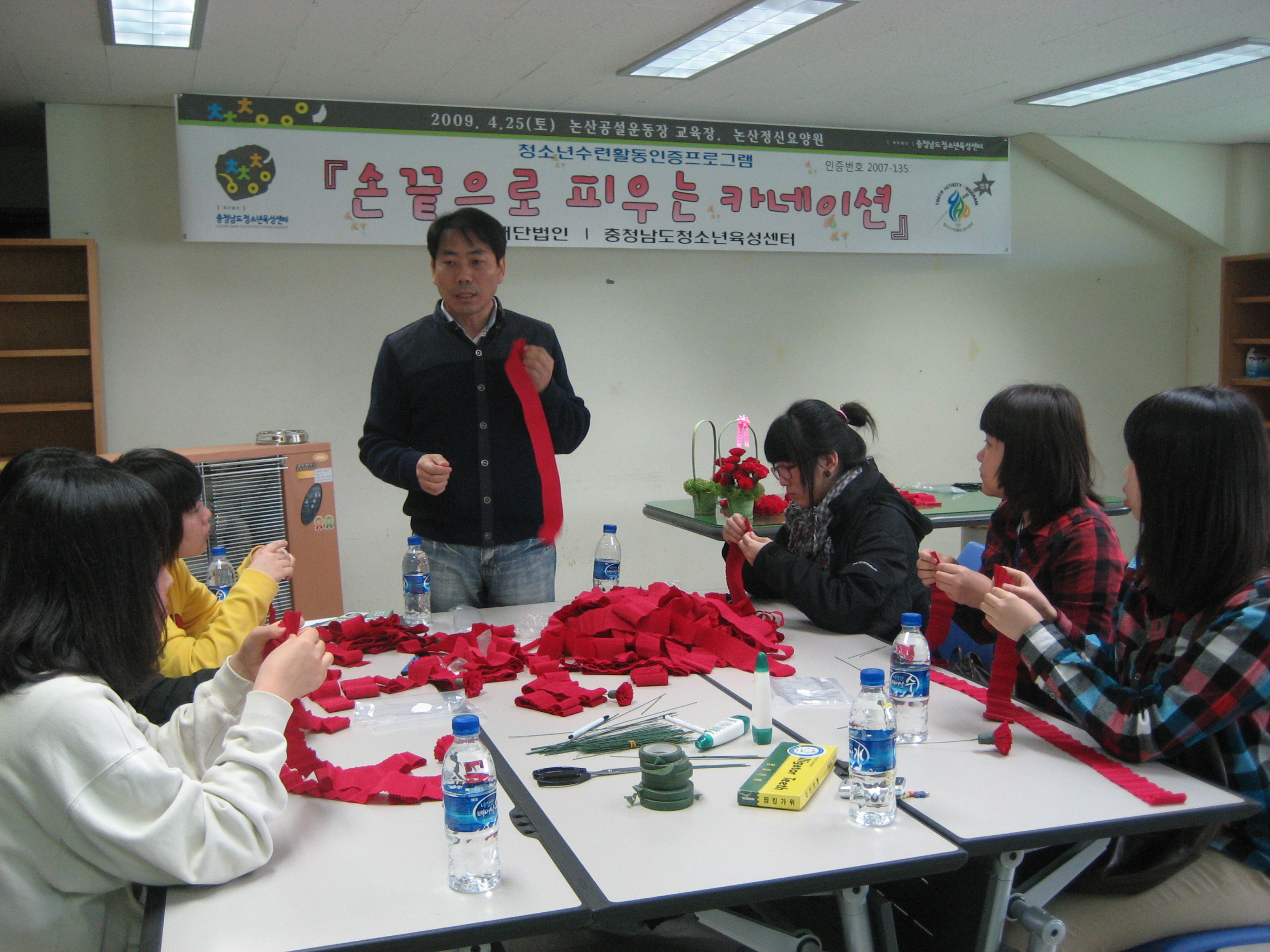 청소년수련활동인증프로그램 4691 | 최고관리자 | 2009-04-27 청소년수련활동인증프로그램 "손끝으로 피우는 카네이션" 진행하였습니다.청소년 17명과 함께 종이카네이션을 만들어 논산정신요양원에 계시는 어르신들께직접 달아드리고 위문활동을 하였습니다.