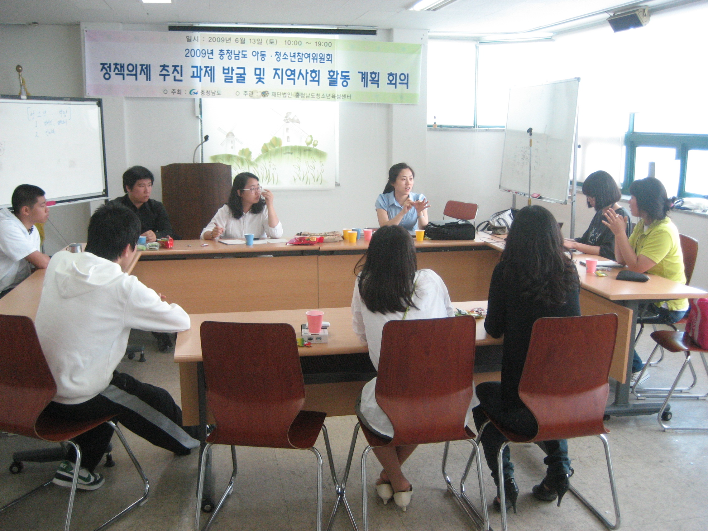 충청남도 아동·청소년참여위원회 지역활동 계획회의 4605 | 최고관리자 | 2009-06-17 지난 6월 13일 충청남도 아동 · 청소년 참여위원회 위원들이 지역활동 계획회의를 실시하였습니다지역 청소년들의 진로와 관련된 의견을 듣고자 설문지와 캠페인 활동을 하게 됩니다.충남 청소년 여러분의 많은 도움과 협조 부탁합니다.