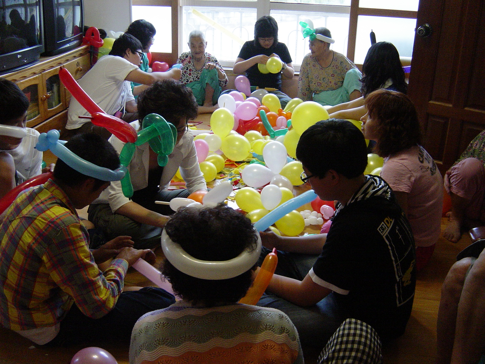 아산시내 장애인 및 노인시설 가족들과 풍선만들기