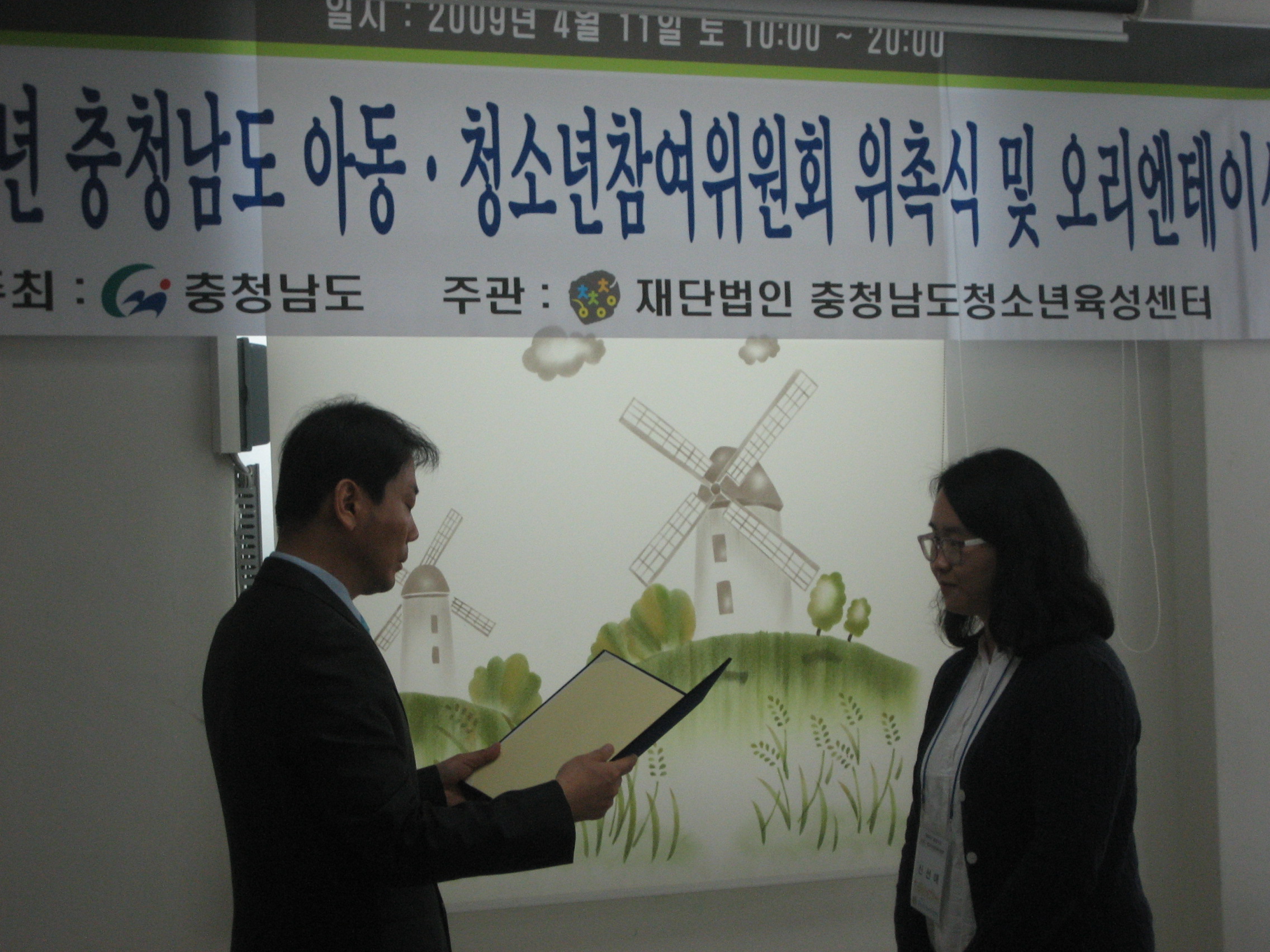 2009년 충청남도 아동·청소년참여위원회 위촉식 및 오리엔테이션 4581 | 최고관리자 | 2009-04-14 지난 4월 11일 토요일 2009년 충청남도 아동·청소년참여위원회 위촉식 및 오리엔테이션이 있었습니다.청소년이 함께하는 세상 충남의 참여위원회 위원들이 시작하겠습니다.지켜봐주시고 응원해 주세요~