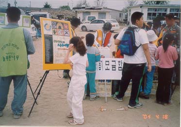 부적초등학교 부남분교에서의 점심시간- 성금모금과 전시물 관람중