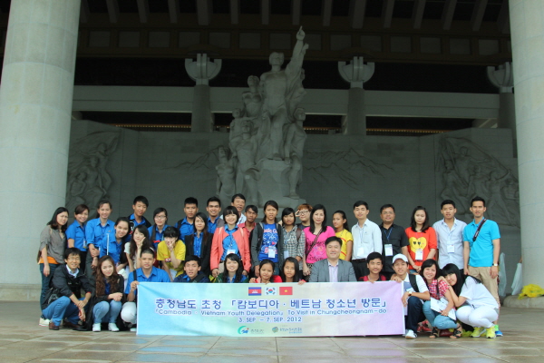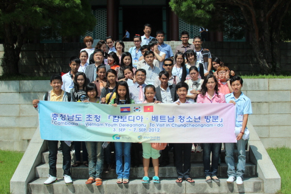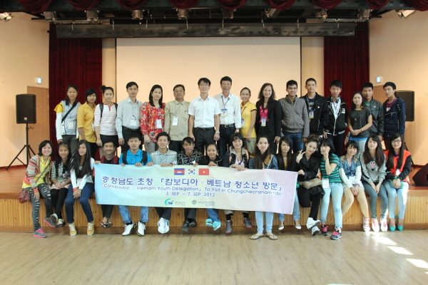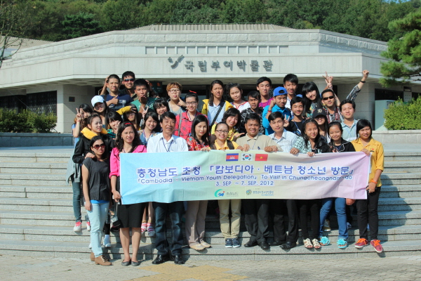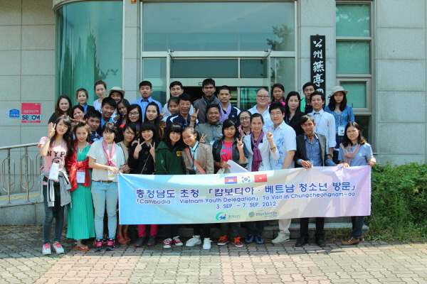 충청남도 초청 '캄보디아·베트남 청소년 방문' 4704 | 최고관리자 | 2012-09-13 캄보디아와 메트남 청소년들이 지난 9월 3일 부터 7일까지 4박 5일간의 일정으로 우리 道를 방문하여 문화와 산업·역사에 대해 체험하고 돌아갔다. 충남도가 주최하고 우리 원이 주관한 이번 행사는 우리 도와 우호협력 지역인 베트남 롱안성과 캄보디아 씨엠립의 청소년과 지도자 27명이 우리 도를 방문하여 사회복지시설 및 산업현장 견학, 문화 탐방을 통해 우리道의 문화와 산업 · 역사에 대해 알아가는 소중한 시간이었습니다.