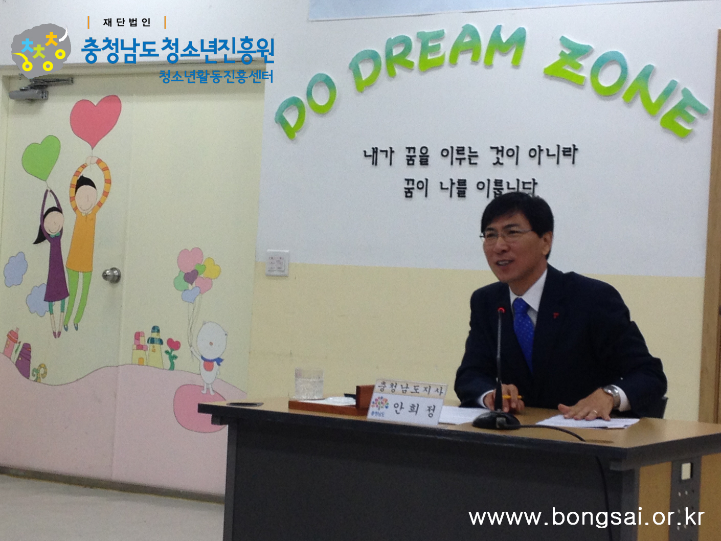 안희정 충남도지사, 충청남도청소년진흥원 방문 4461 | 최고관리자 | 2012-11-15 오늘(2012.11.15) 오전 안희정 충남도지사님께서 충청남도청소년진흥원을 방문해주셨습니다. 직원들과의 대화를 통해 현장의 목소리에 귀 기울여 주신 멋진 도지사님♥ 앞으로도 도민, 특히 청소년들의 이야기에 많은 관심 부탁드립니다.