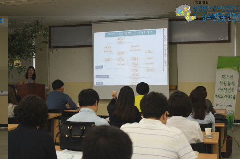 청소년자원봉사 시스템 연계 서비스 안내 교육 3810 | 최고관리자 | 2014-06-10 청소년 봉사활동을 운영하는 터전 담당자들을 대상으로 청소년자원봉사 시스템 연계 서비스에 대한 교육을 실시하였습니다.