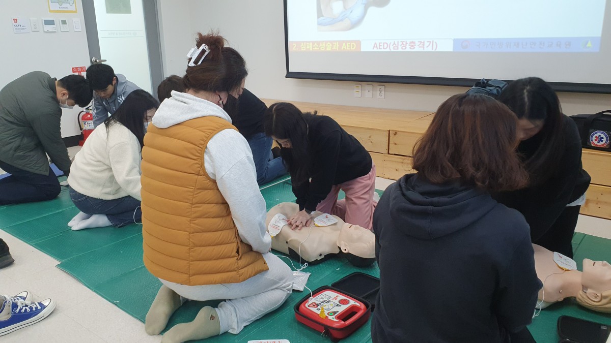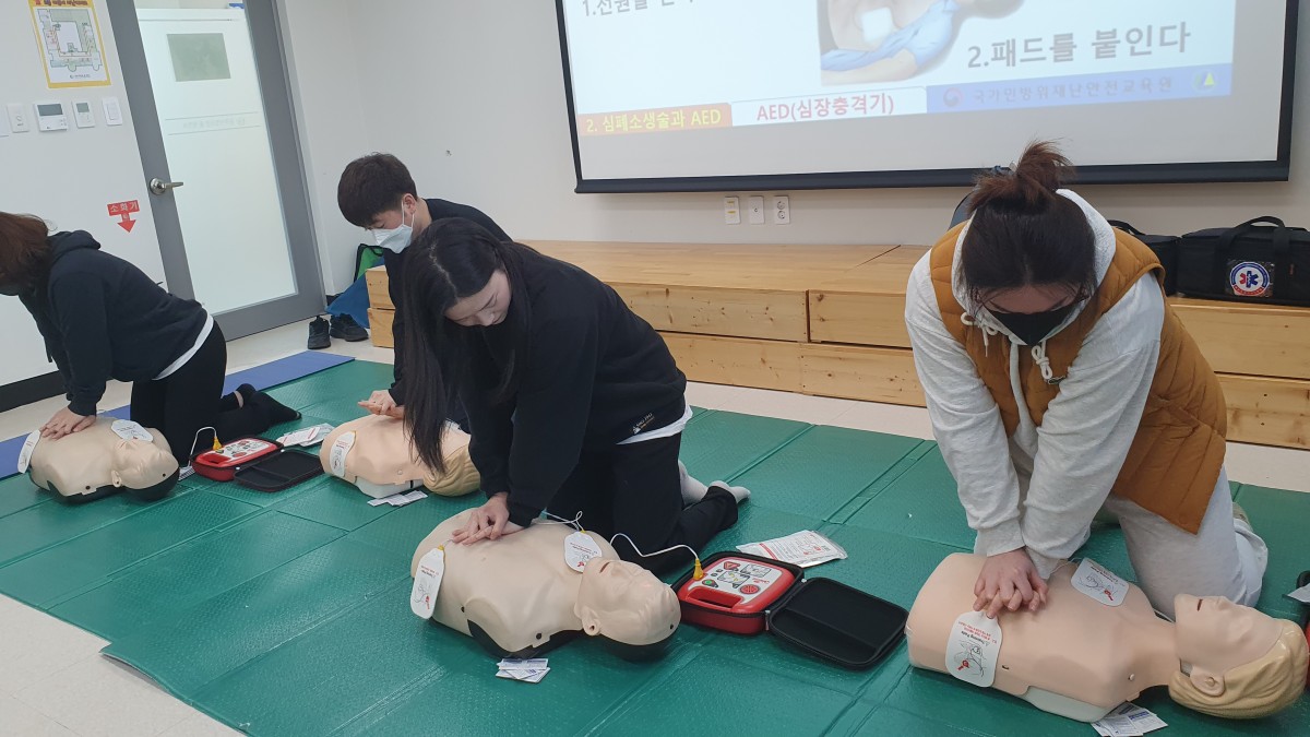청소년활동현장 안전역량 강화교육 (응급처치교육 1차) 2047 | 활동진흥센터 | 2023-03-02 ❍ 일시: 2023. 2. 17.(금) 09:00~18:00❍ 장소: 공주시청소년꿈창작소 ❍ 주요내용: 심폐소생술 실습, 자동 심장충격기 사용, 골절 처치 방법 교육 등