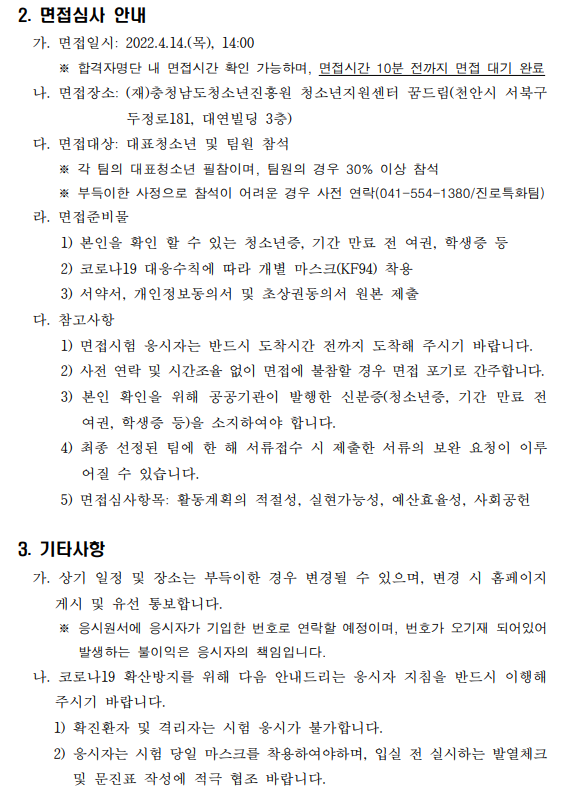 2022년 학교 밖 청소년 자기주도형 프로젝트 서류 심사결과 및 면접심사 안내.pdf (85.8K)
