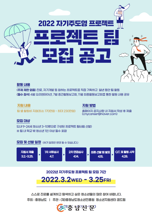[22.2.15./충남신문] 충청남도청소년진흥원, 진로 및 직업과 관련된 자율 프로젝트 팀 공모