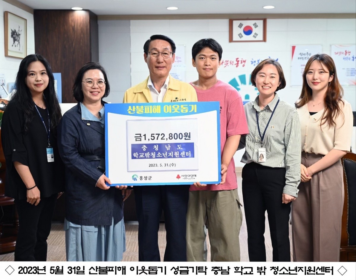 충남 홍성군은 지난 5월 31일, 충남의 학교 밖 청소년들이 구슬땀을 흘려 모은 157만2800원을 홍성 산불 피해지원을 위해 기부했다고 밝혔다.