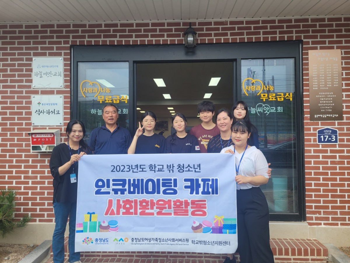 [충남일보 차지현 기자] 충남여성가족청소년사회서비스원 학교밖청소년지원센터 꿈드림에서는 7일 학교 밖 청소년의 경제적 자립역량 강화를 위해 청소년이 직접 창업하고 운영하는 인큐베이팅 카페의 청소년 사장님들과 함께 사회환원활동에 나섰다.