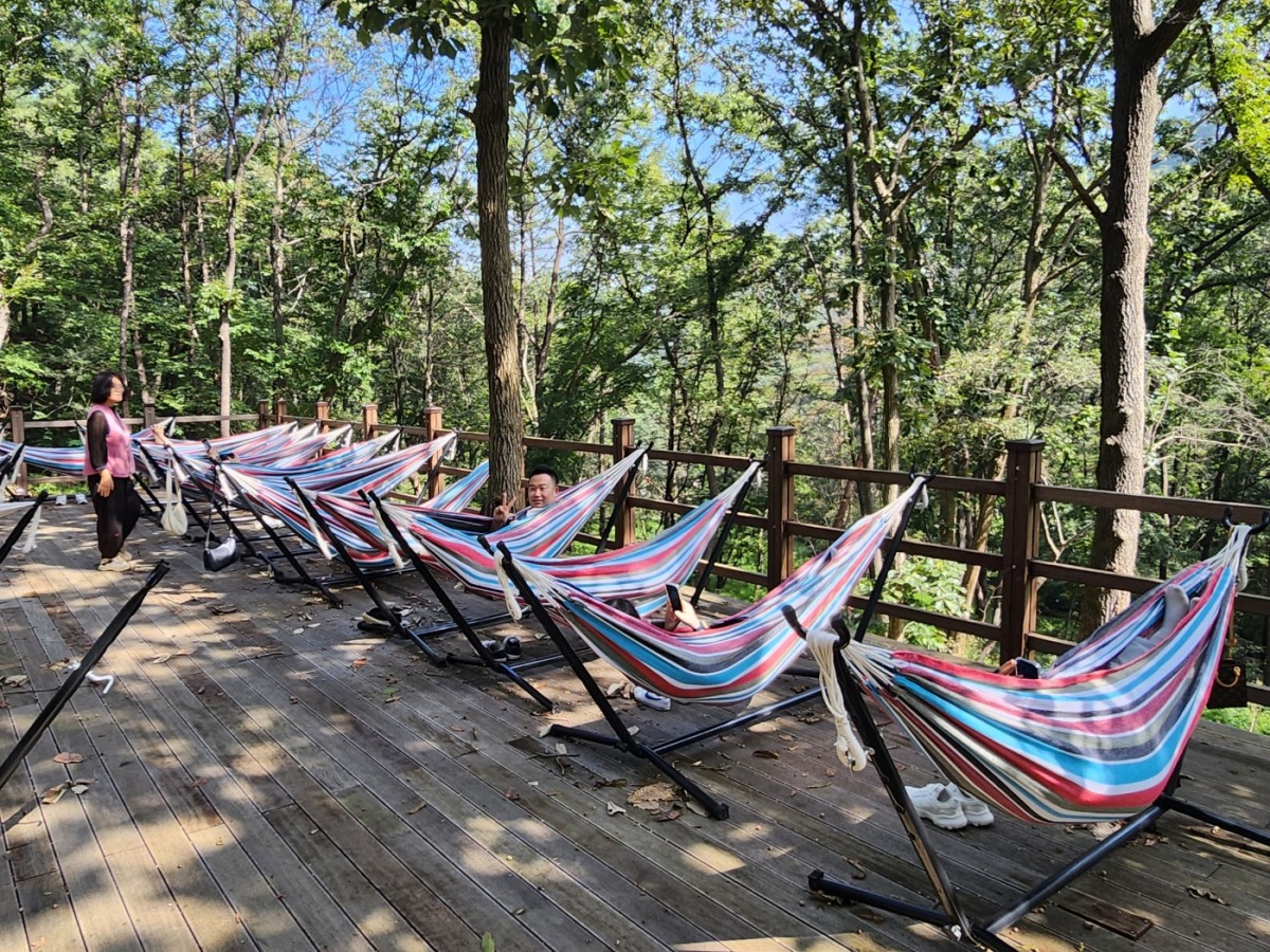 치유의 숲 시간에는 맑은 공기를 마시고 명상쉼터에서 해먹을 이용하여 산림을 즐겼답니다:)