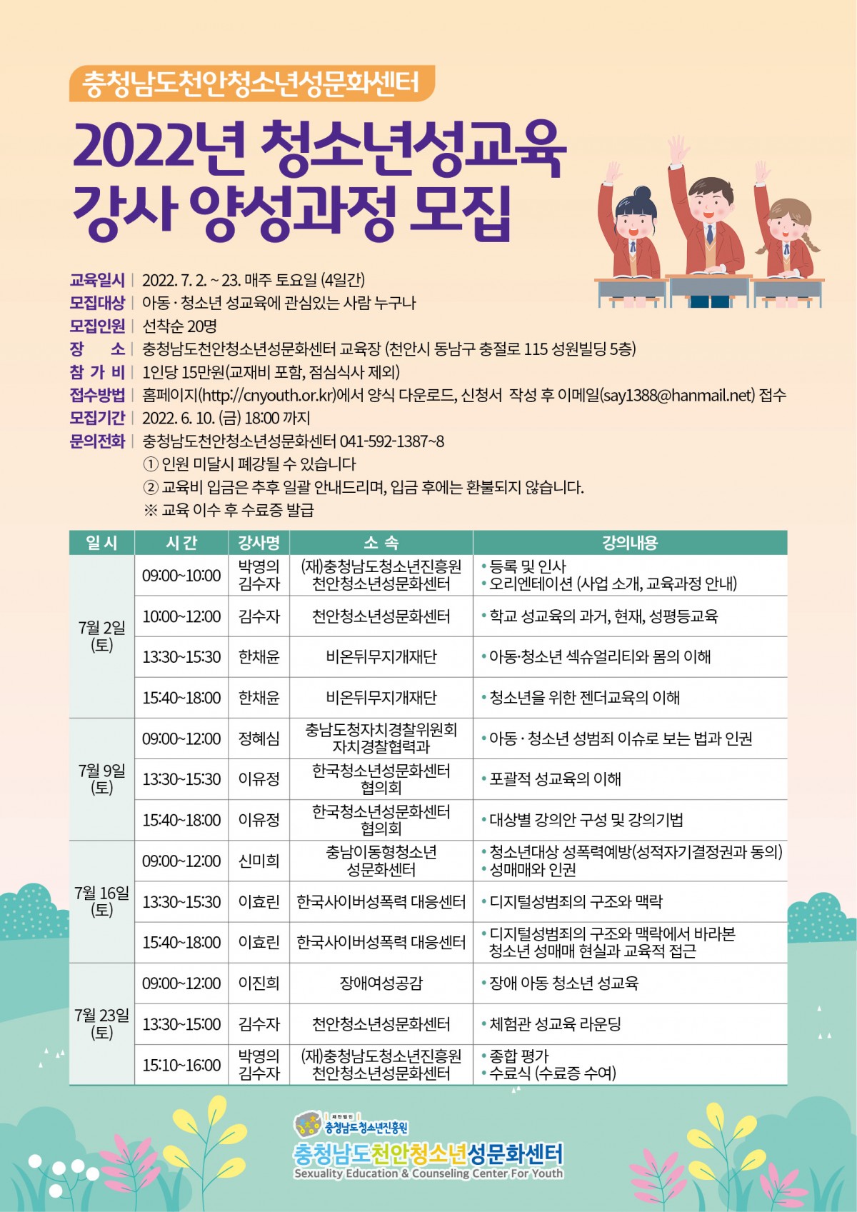 충청남도천안청소년성문화센터 청소년성교육 강사 양성과정