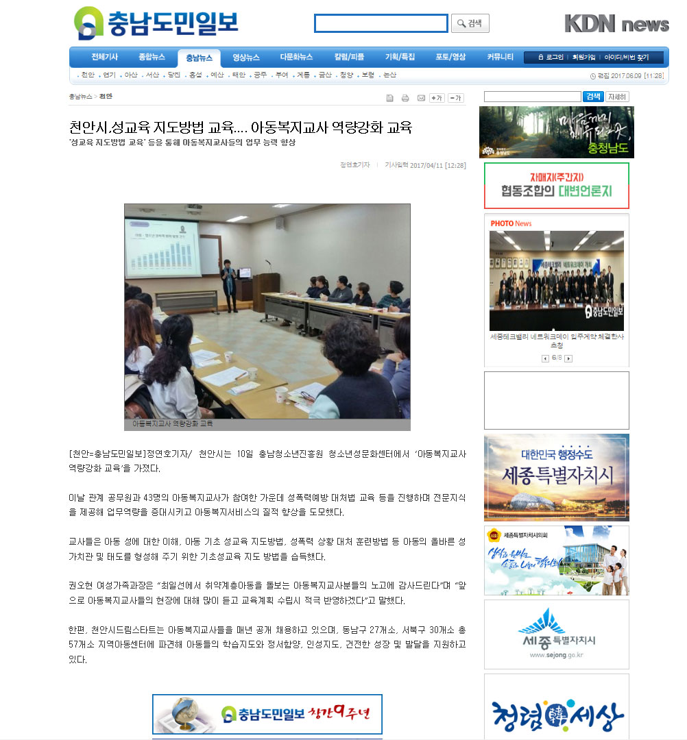 2017.4.11 천안드림스타트 교사교육 실시(충남도민일보)