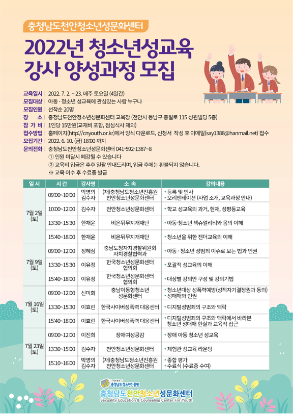 2022년 천안 청소년 성문화센터  성교육 지도자 양성과정 안내